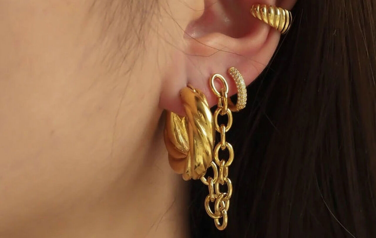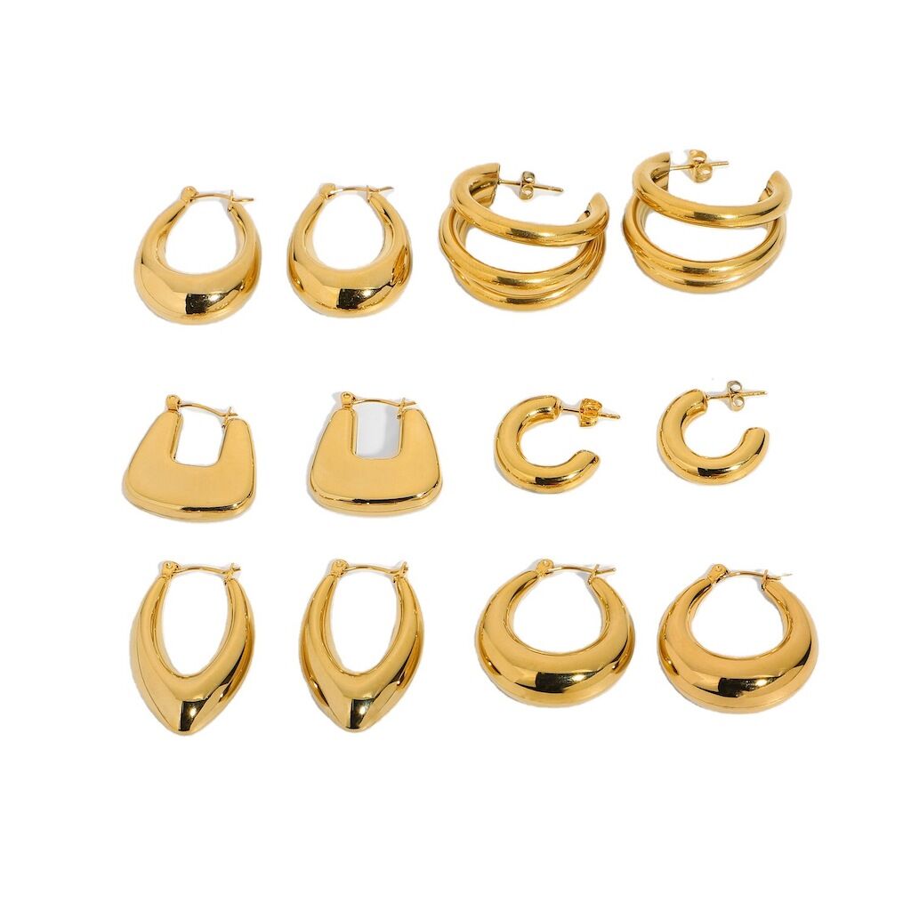 Desain anting-anting hoop emas: anting-anting hoop emas chunky yang unik dengan desain khas, Kenakan untuk membuat telinga Anda lebih lucu dan sempurna ramping bentuk wajah Anda, anting-anting hoop dapat membuat kesan yang bagus