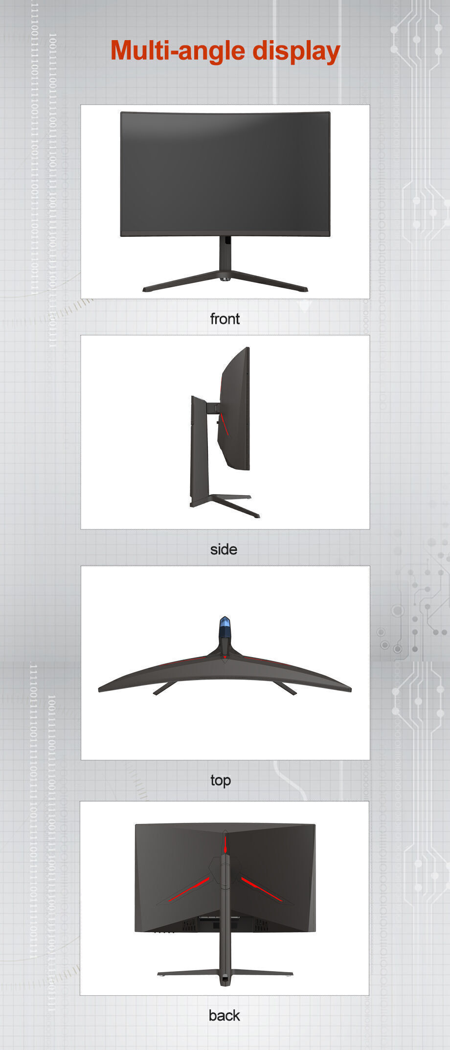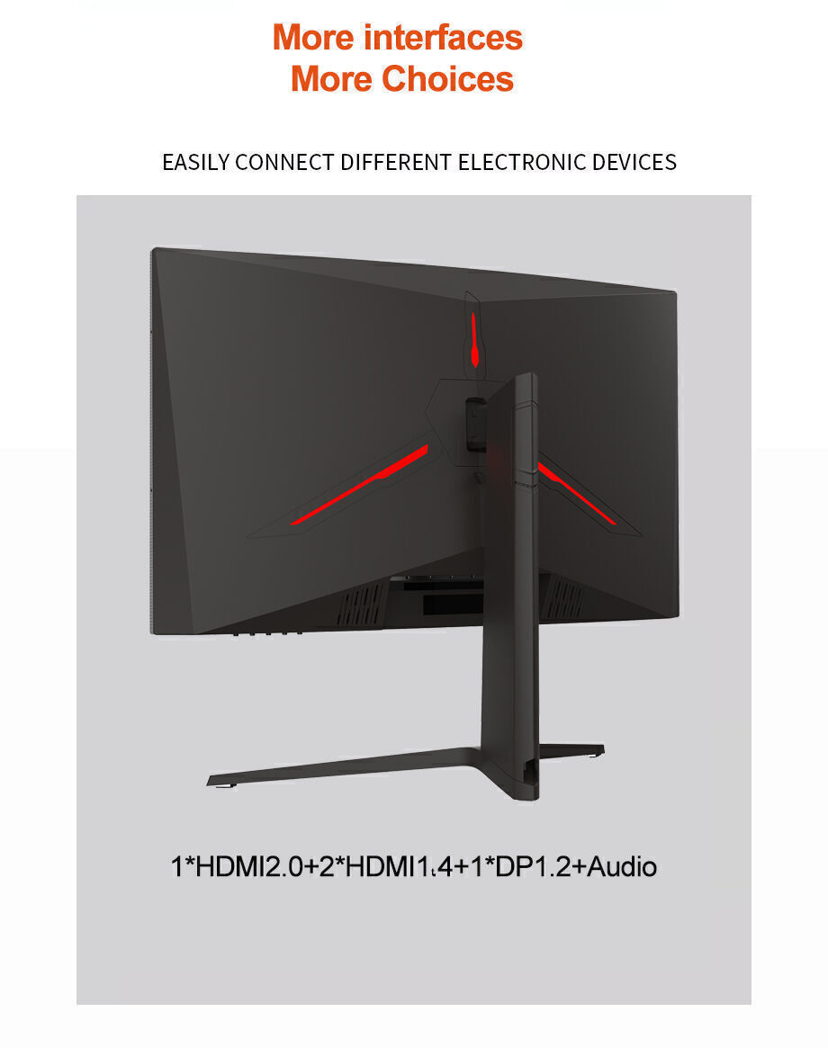 | Fitur | Dasar dudukan yang dapat disesuaikan: putar/tinggi/kemiringan/Pivot Pengeras suara: NA Sinkronisasi gratis: Dukungan Dudukan VESA: 75*75mm Over Drive: Dukungan MPRT: Dukungan FPS/RTS: Mendukung PIP/PBP: Mendukung Lampu latar merah Cetakan pribadi |