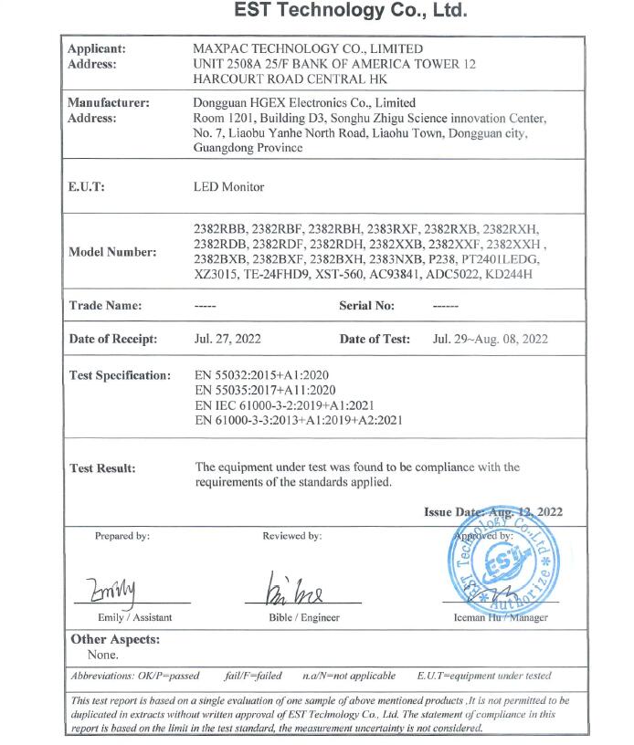 | Viewing Angle | H:178o V:178o | Other function | Low blue light Freesync Flicker-Free |