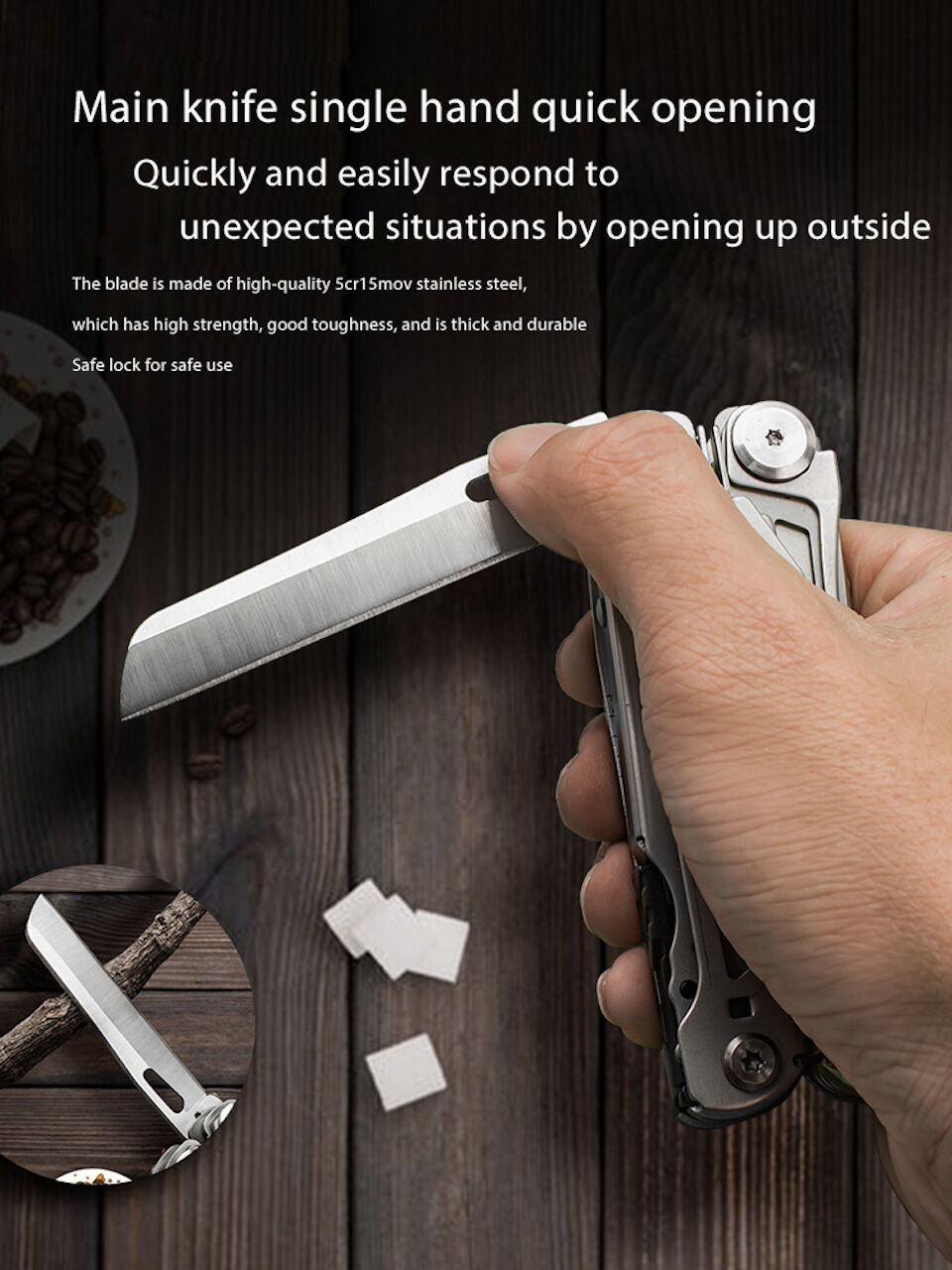 Produk penting luar ruangan: multitool sempurna untuk berburu, trademesmen, dan dibawa sehari-hari; Tambahan yang sangat baik untuk kebutuhan berkemah Anda, kotak peralatan, pakaian kerja, dan memancing dan mendaki gunung
